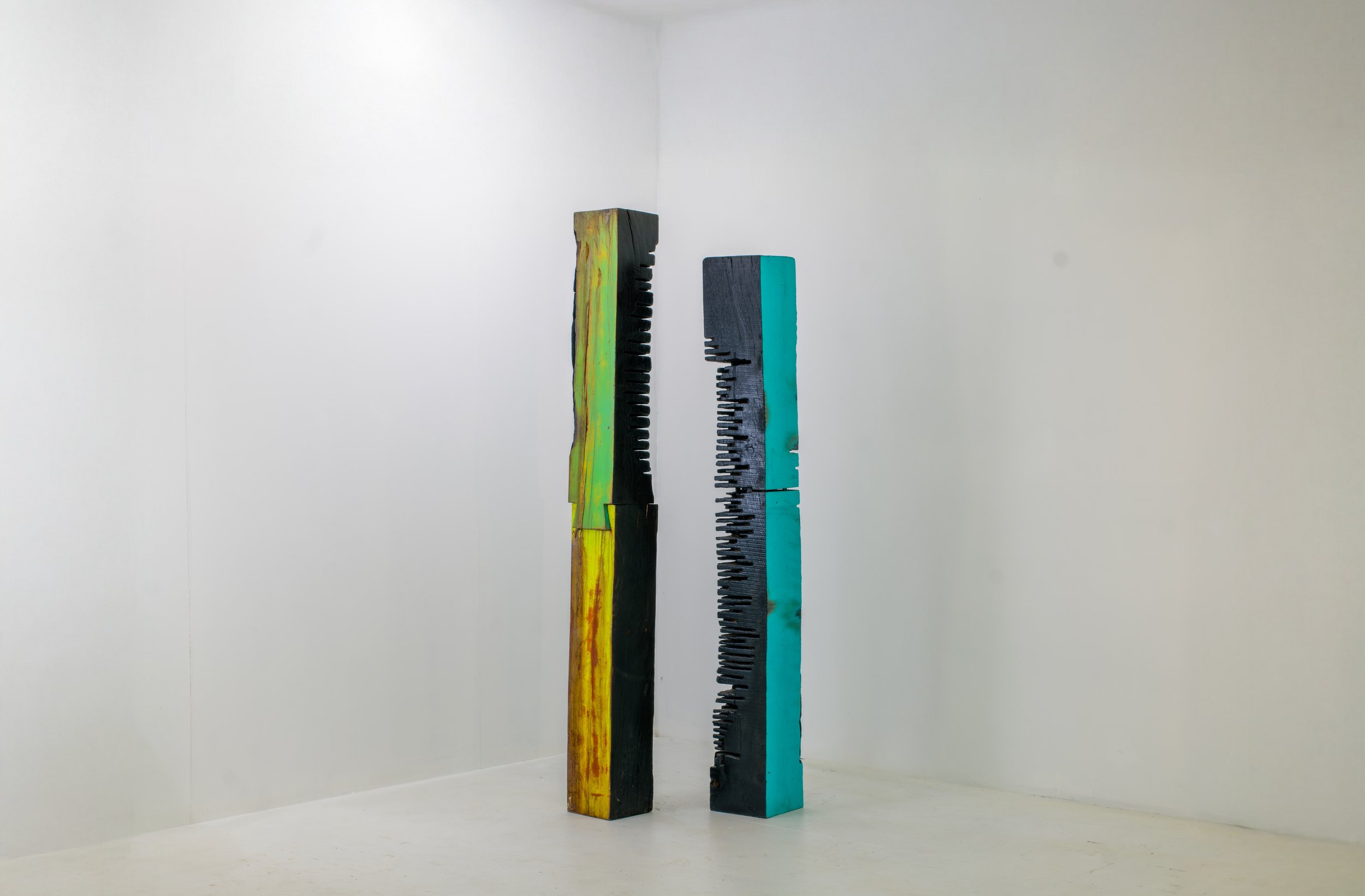 Burnt Ash wood, steel, natural oils, acrylic paint.